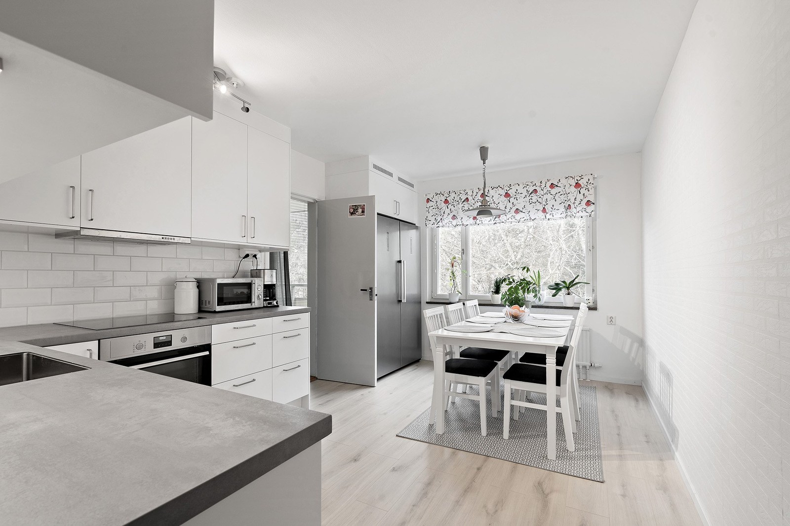 Trägolv och vita målade väggar. Nyrenoverat och fullutrustad kök från 2024.