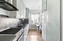 Kök med ljusgröna skåpsluckor och svart bänkskiva. Ovan arbetsytorna finns ett kaklat stänkskydd i svart kvadratiskt kakel. Utrustat med spis med ugn, fläkt, diskmaskin, dubbel diskho samt kyl och frys i fullhöjd. Golvet är lagt med laminat. Intill fönster finns en matplats med plats för matbord och stolar. Väggarna är vitmålade och takhöjden ger rummet extra rymd.