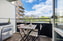 Balkong med trätrall och plats för utemöbler. Belägen under ovanliggande balkong vilket ger tak och visst skydd mot regn och blåst. Vetter mot grönskande omgivning med insynsskyddat läge.