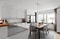 Ljust kök med gott om arbetsytor och förvaringsmöjligheter, med en bardisk som sammankopplar köket med vardagsrummet på ett naturligt sätt. Moderna vitvaror med separat kyl & frys, inbyggd mikro, separat ugn och integrerad diskmaskin. Spishäll under integrerad fläkt. Ekparkettgolv och vitmålade väggar.
