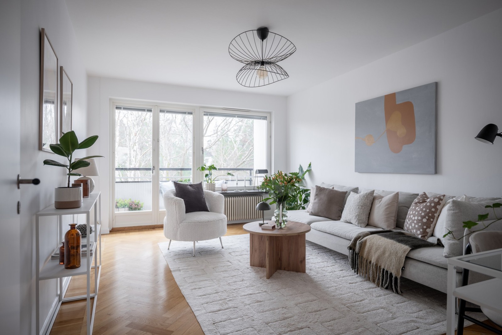 Vi har fått det stora förtroendet av bostadsrättsföreningen att förmedla denna fantastiska bostad på Högnäsvägen – ett suveränt och flexibelt boende med ypperligt läge på Lidingö! Här erbjuds en optimalt planerad 2–3:a högt upp i huset med balkong i fritt läge och fönster i två väderstreck som ger ett härligt ljusflöde. Bostaden har nyligen ytskiktsrenoverats med omsorg, där man bevarat de tidstypiska detaljerna och skapat en stilren helhet. Nya golv har lagts in och övergår elegant mot den vackra originalparketten i vardagsrummet. Köket är väl omhändertaget och uppdaterat med full maskinell utrustning, där de charmiga originalskåpen har behållits och kompletterats med moderna inslag. Här finns gott om förvaring bakom vit köksinredning och en bänkskiva som stilrent bryter av mot handtag. Vardagsrummet erbjuder en generös social yta med plats för både soffgrupp och middagsbord – perfekt för umgänge och trivsel. Planlösningen är flexibel med ett till två sovrum, varav det ena är rymligt och har generös klädförvaring. Badrummet är stambytt och håller god standard. Balkongen blir en naturlig förlängning av bostaden och bjuder på ett fritt och inbjudande läge.