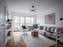 Luftigt och inbjudande vardagsrum med vacker original fiskbensparkett. Här finns gott om plats för både soffgrupp och matplats – en naturlig samlingspunkt för familj och vänner.