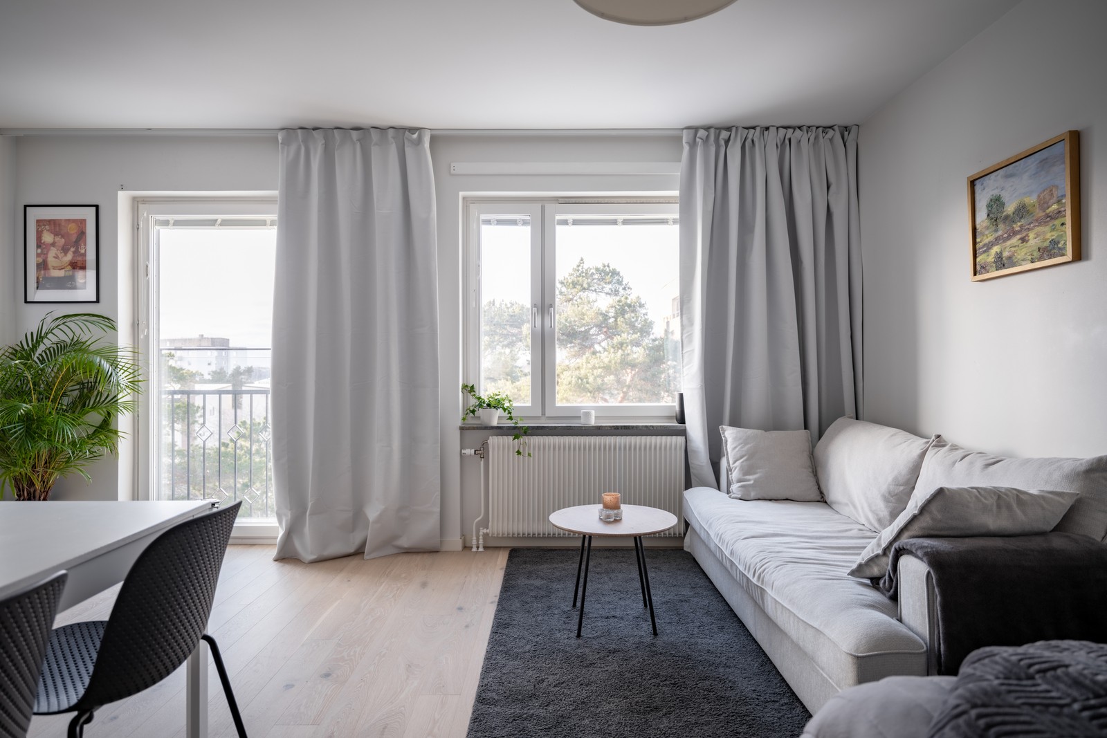 När du kliver in i lägenheten möts du av en välkomnande och ombonad atmosfär. Lägenheten har vackert ljusinsläpp tack vare fransk balkong. Bra förvaring i hall via garderob med skjutdörrar. Vackra golv i bostaden ger en stilren och behaglig känsla.