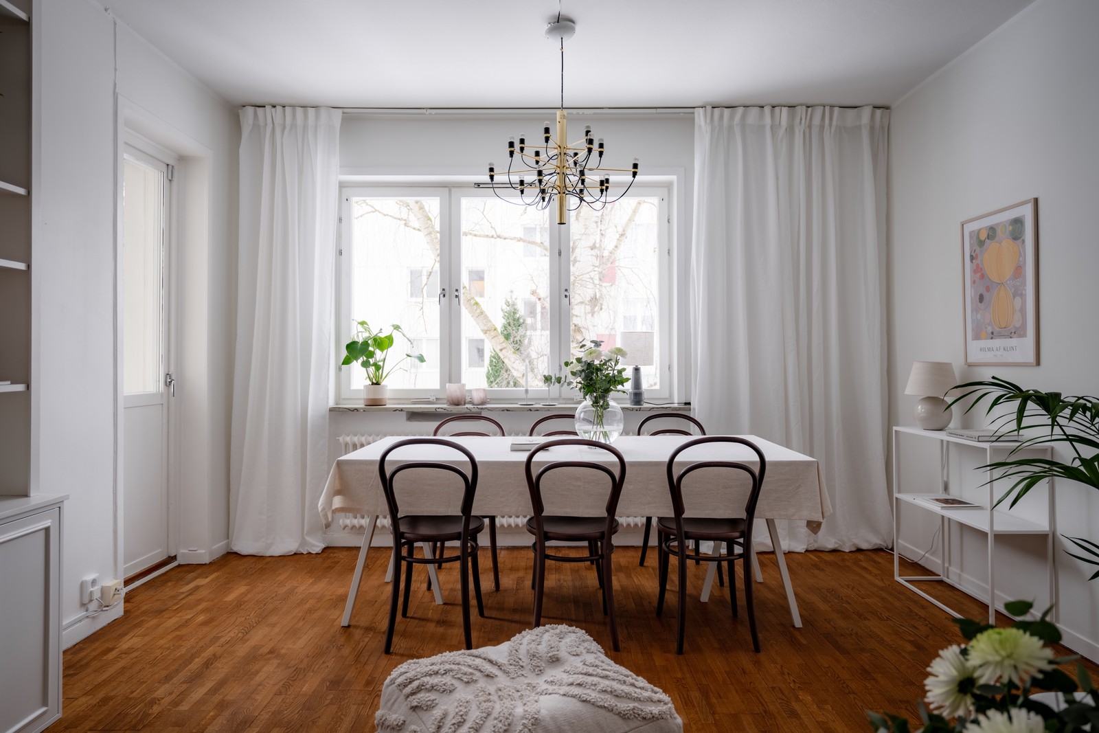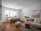 Elegant trea med öppna ytor, vackra material och balkong i bästa solläge