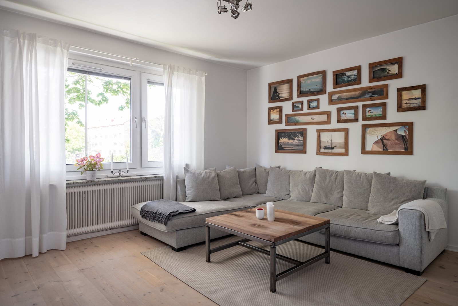 När du kliver in genom dörren lämnar du stadens puls bakom dig och möts av ett hem där lugnet råder. Här kombineras en social och välplanerad layout med en charmig inredningsstil som för tankarna till shabby chic – en varm och inbjudande atmosfär med ljusa toner, personliga detaljer och vackra plankgolv som löper genom bostaden. Varje kvadratmeter är smart disponerad för att skapa ett hem som både är funktionellt och estetiskt tilltalande. Det helkaklade, stambytta badrummet erbjuder en fräsch start på dagen. Den öppna planlösningen mellan kök och vardagsrum bjuder in till umgänge och gör bostaden lätt att trivas i. Sovrummet är generöst tilltaget med plats för både vila och förvaring, och kompletteras av flera garderober som ger gott om utrymme.