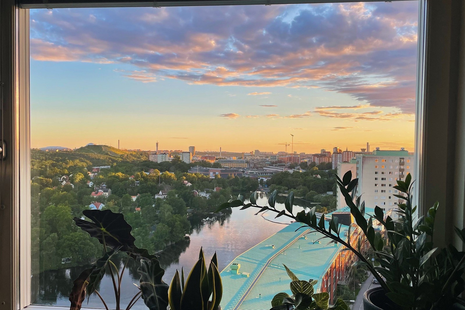 Högt upp i huset med milsvid utsikt över skog och sjö
