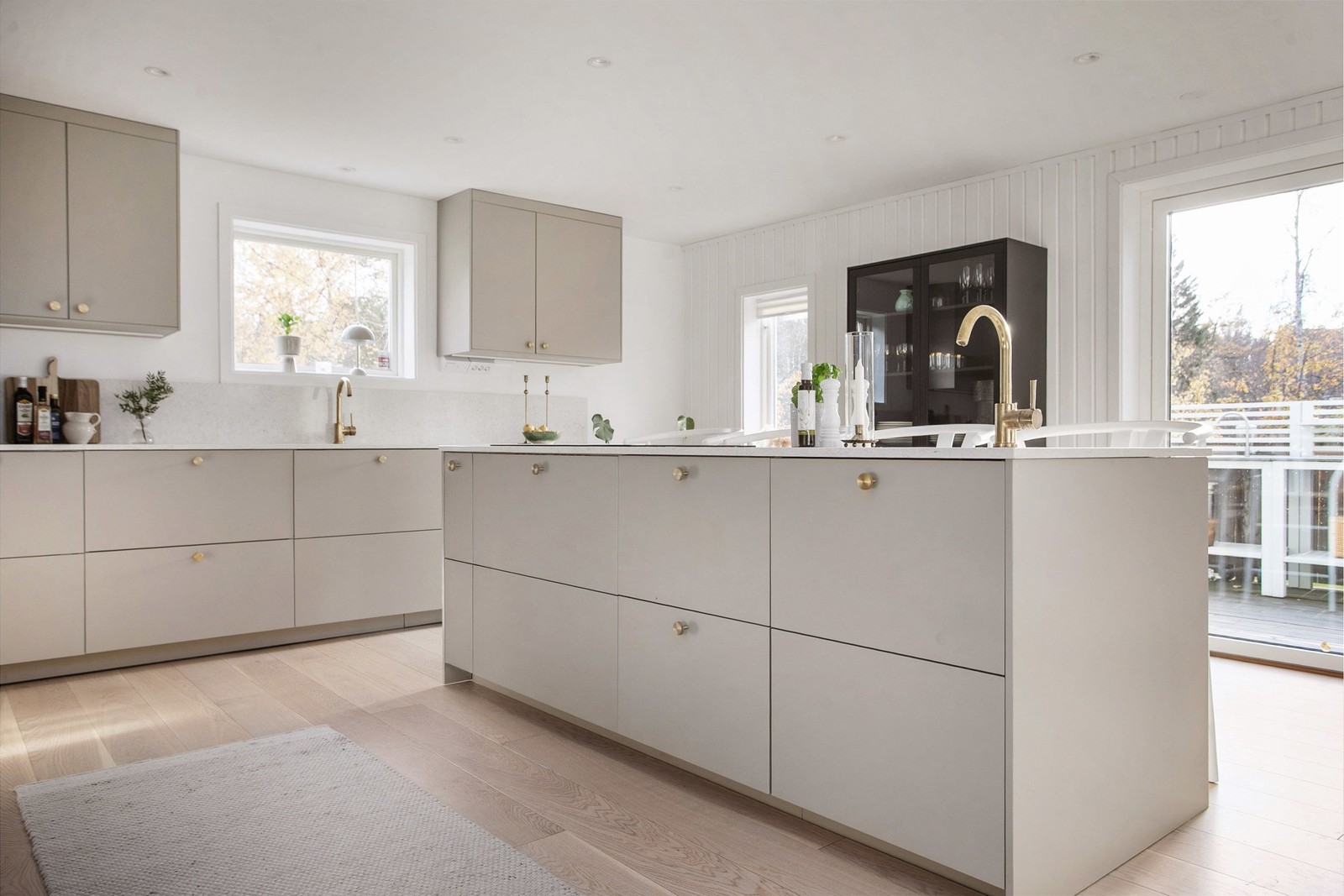 2022 Nytt kök, stommar och luckor från IKEA. Bänkskiva silestone från Whitegoods/Granitop Beslag, kranar och hoar från tapwell
