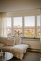 Vardagsrum: Ljust och luftigt vardagsrum med stora fönsterpartier som släpper in rikligt med ljus och erbjuder en fantastisk utsikt. Rummet har en elegant och tidlös känsla med plats för både soffgrupp och matsalsdel.