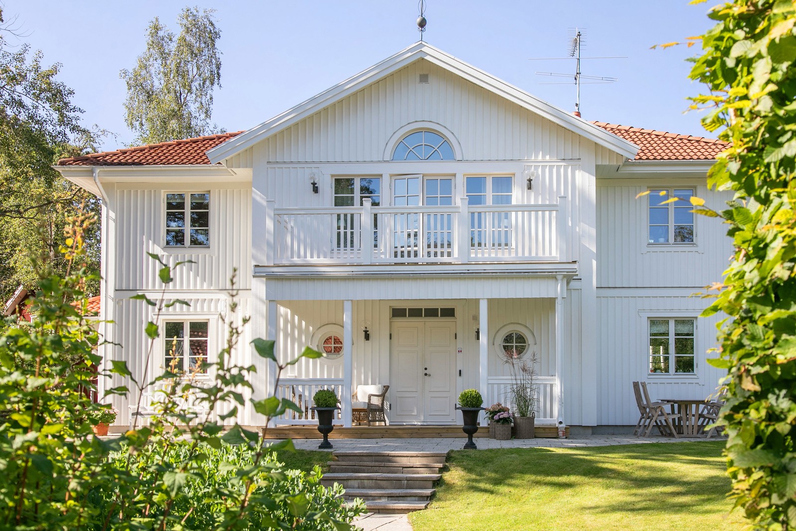 Öppna sociala ytor, många sovrum, 3 badrum, stor härlig trädgårdstomt med generös terrass i sydväst