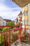 Ljus luftig trea, balkong ovan innergårdens grönska