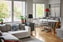 Det luftiga vardagsrummet, generöst till ytan är beläget med en öppen planlösning intill köket.