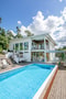 Arkitektritat hus med pool och sjöutsikt vid vattnet intill Skurusundet