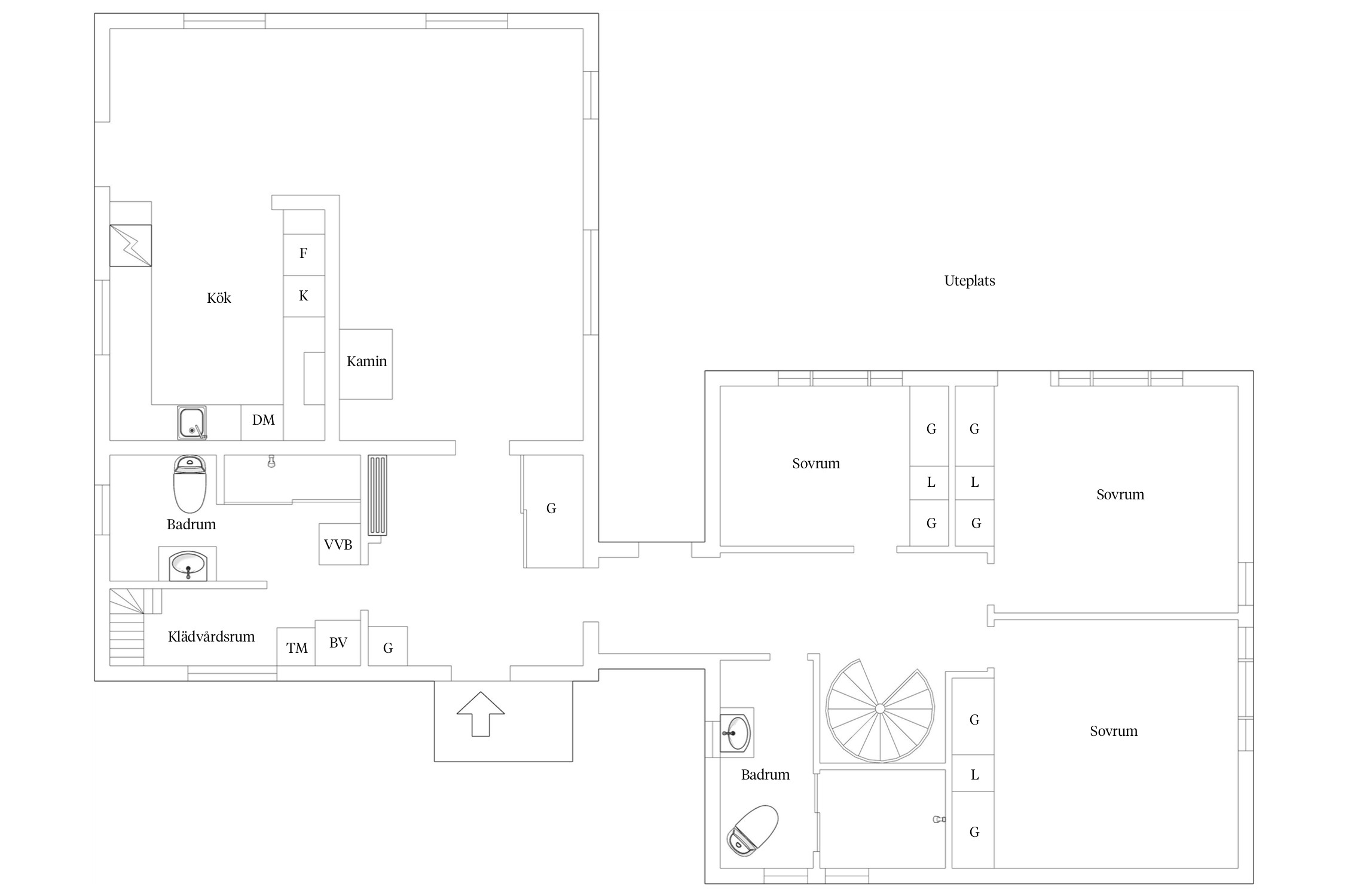 Ljusa sociala ytor och många bra sovrum. Stora soliga uteplatser, växthus, gräsmatta samt uthyrningsdel, 2 rok. Nära förskola, badsjö och snabb buss.