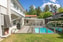 Den plana, insynsskyddade trädgården om 1 018 kvm är en grön oas där solen kan avnjutas hela dagen. Det helt privata poolområdet på baksidan skapar en semesterkänsla hemma, med gott om plats för både loungemöbler och stora middagar i kvällssolen.