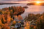 Naturtomt som klättrar längs med bergskanten ovan vattnet.