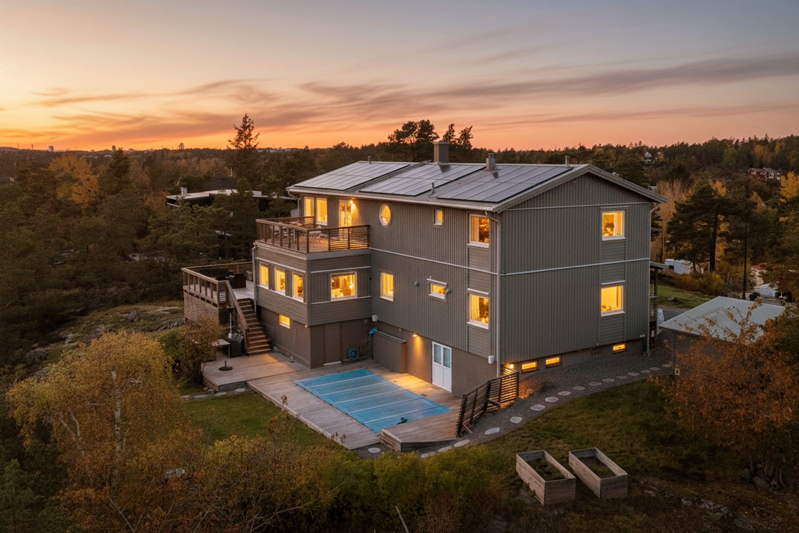 Helt insynsskyddat Örnnäste med pool. Fantastisk utsikt.
