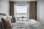 Bostadens sovrum har bra med förvaring i flertal garderober.Från lägenheten har du, året om, en magisk sjöutsikt att vakna upp till. Sovrummet rymmer dubbelsäng och ytterligare möblering.
