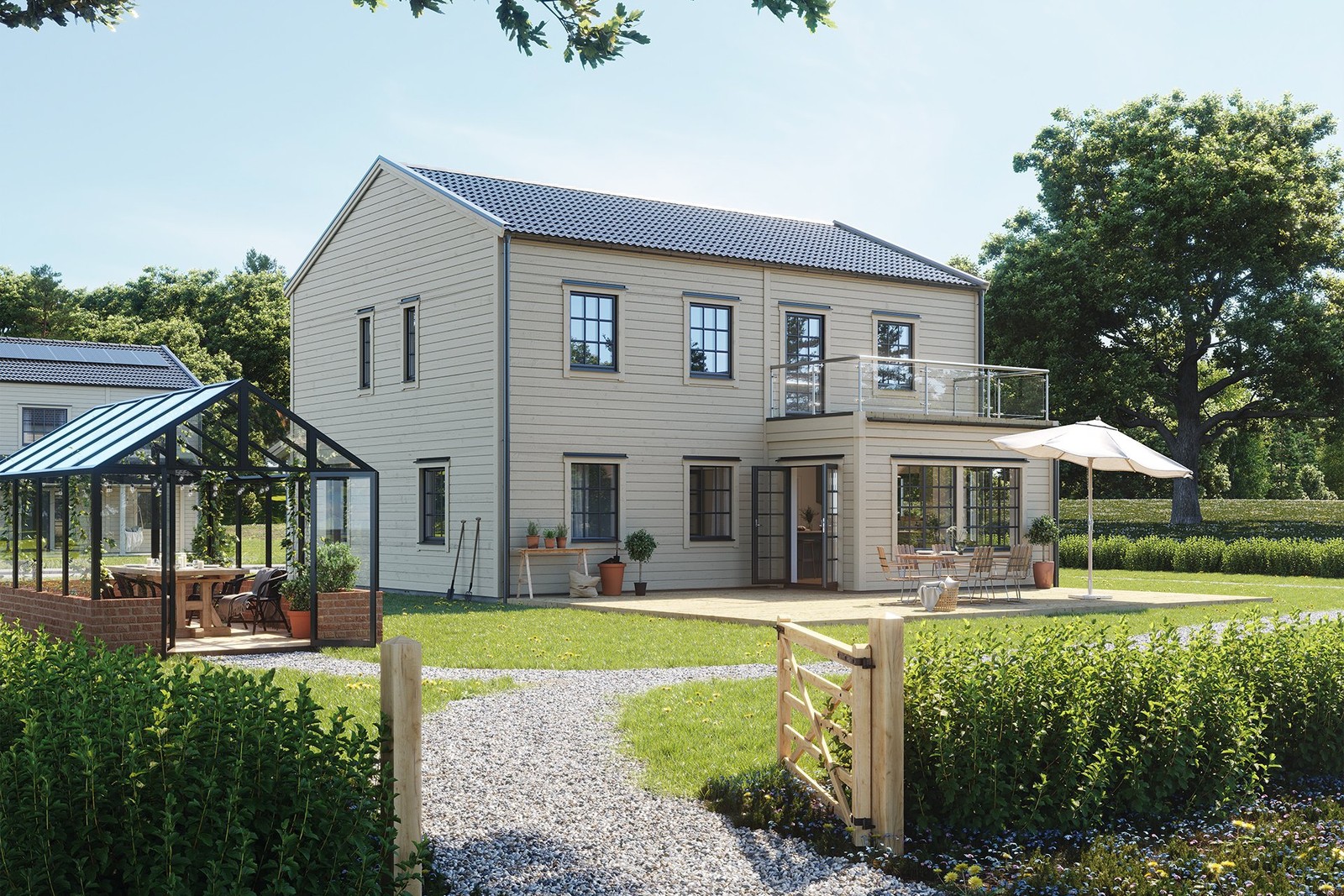 Med sin luftiga glasveranda och sitt härliga ljus blir vardagsrummet Villa Annebergs självklara hjärta – såväl vardagar som helger. Här har du ert öppna kök med plats för både förråd och köksö, och genom de helglasade dörrarna tar du ditt nybryggda kaffe direkt ut på altanen. En rymlig och välplanerad entré gör det lättare att hålla rent, och med tre sovrum och två arbetsrum finns det generöst med plats för både familjemedlemmar och prylar. Och till ovanvåningens ljusa allrum – med balkongen precis utanför – är det skönt att dra sig undan för att göra läxor eller umgås.