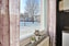 Nås via hallen och är utrustat med dusch, handfat och WC. Vitt kakel med en ljusblå dekorrad. Vitt badrumsskåp.