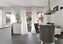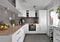 Superfräscht kök med vita luckor och kaklade väggar ovanför arbetsbänken. Köket är utrustat med kombinerad kyl- och frys, integrerad diskmaskin, fläkt, ugn, häll och inbyggd mikrovågsugn. I anslutning till köket finns matplats. Sommartider har ni en extra matsal tack vare utgången till uteplatsen på framsidan. På golvet ligger klinker och väggarna är målade.