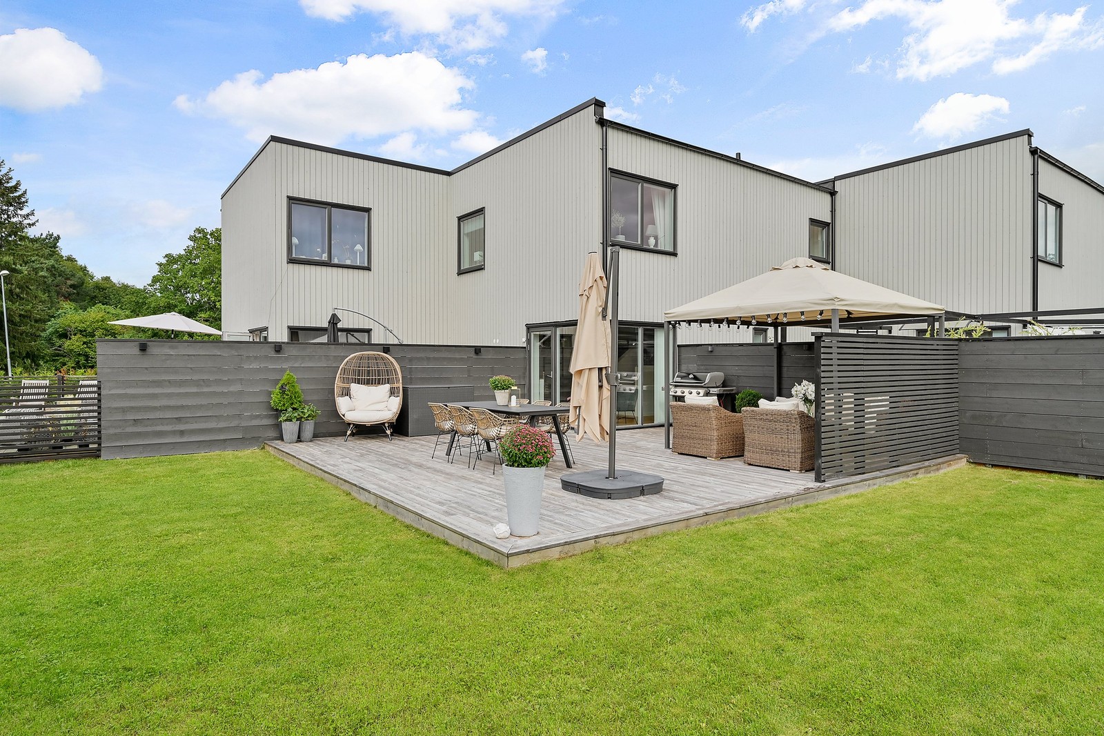 Fräscht bostadsrättsparhus med fina uteplatser och fin trädgård.