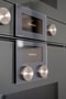 Tvättmaskin och torktumlare från Bosch är smidigt inbyggda i mörkare grå skåp med beslag i stål från Buster+Punch.