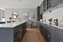 Köket är exklusivt och öppet mot vardagsrum och matsal. Köksluckorna är profilerade och i en enhetlig peppargrå kulör, vilket ger en tidlös och enhetlig estetik. Överskåpen har glaspaneler som ger ett öppet och luftigt intryck. Bänkskivan i ljus gråmelerad granit och det matchande stänkskyddet skapar en stilfull kontrast. Väggen ovanför bänken är målad i en mörkare grå nyans.