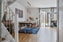 Ljust och luftigt vardagsrum med plats för både soffgrupp och mediamöbel. Den stilfulla accentväggen skapar en elegant kontrast och ger rummet karaktär. Härifrån nås bostadens uteplats och trädgård, vilket ger en fin förlängning av rummet under årets varmare månader.