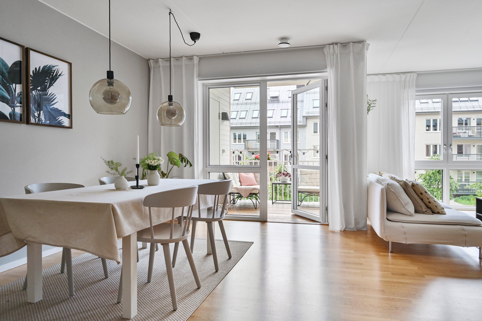 I anslutning till köket ligger vardagsrummet med öppen planlösning mot matplats och kök. Här finns även utgång till balkongen.