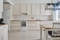 Vidare efter hallen kommer man in till det moderna köket med sina stilrena vita luckor där man får plats med mycket köksredskap. Ovanför arbetsbänken sitter ett vitt kakel på väggen. Köket är utrustat med mikrovågsugn, häll, ugn, fläkt, kyl och frys i fullhöjd och diskmaskin. I anslutning till köket finns en rymlig matplats för sex personer. Det finns även ett stort skafferi som är under trappan. På golvet ligger laminat och väggarna är målade i vit färg.