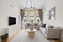 Köket är både stilrent och funktionellt med vita köksluckor och komplett utrustning: kyl, frys, spis med induktionshäll, fläkt, inbyggd mikrovågsugn och integrerad diskmaskin. Här finns en rymlig matplats intill fönstret som ger fint ljusinsläpp och skapar en luftig känsla. Den öppna planlösningen mot vardagsrummet bjuder in till socialt umgänge och gör köket till hemmets naturliga samlingspunkt. Sänkt tak med infällda spotlights och parkettgolv förstärker den moderna helhetskänslan.