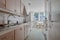 Köket ligger till vänster från hallen sett och har gott om skåp och lådor i originalskick samt en stor diskbänk i rostfritt stål. Köket är i original och även de populära Perstorps bänkskivorna i modell "Virrvarr" är kvar. Kyl/frys från Whirlpool samt extra frys från Elektro Helios. Spis med häll från Husqvarna. Ljusrosa nyans på luckor och lådfronter samt ljus plastmatta på golvet. Ljus matplats intill fönster med vädringsluckor på vardera sida om fönstret med persienner. Här lagar man gärna mat och äter vid den trivsamma matplatsen intill fönster.