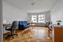 Stort och ljust vardagsrum med hel fönstervägg med persienner. Även praktiska vädringsluckor finns på vardera sida om fönstret. Parkett i original.