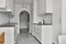 Stilrent renoverat kök med vita luckor. Ovanför arbetsbänken sitter ett fint kakel. Köket är utrustat med kombinerad kyl och frys, diskmaskin, fläkt ochspis. På golvet ligger laminat och väggarna är ljusmålade. Matplats finns för sex personer.