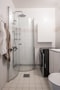 Sovrummet är rymligt med plats för dubbelsäng och garderober. Badrummet är helkaklat med dusch, kommod och handfat, tvättmaskin samt vägghängt skåp för extra förvaring.