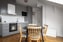 Köket är litet men ack så praktiskt och modernt. Den maskinella utrustningen består av kyl/frys, spishäll, ugn, mikro och fläkt.