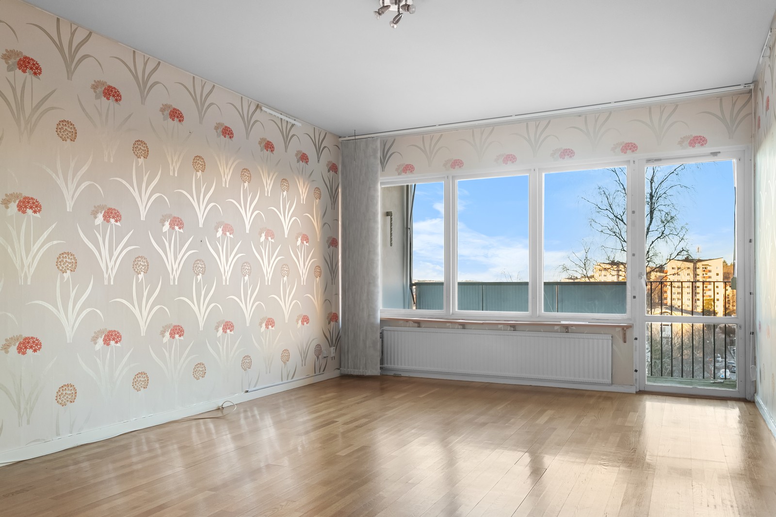 I ett fritt och insynsskyddat läge mot gröna omgivningar och balkong i soligt läge, ligger denna trerummare om 70 kvm.