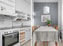 Det mysiga sovrummet rymmer enkelt en större säng och erbjuder dessutom en praktisk klädkammare för extra förvaring. Köket är hemtrevligt och funktionellt, med plats för matplats vid fönstret. Här får du gott om arbetsyta och förvaring för den matlagningsintresserade.