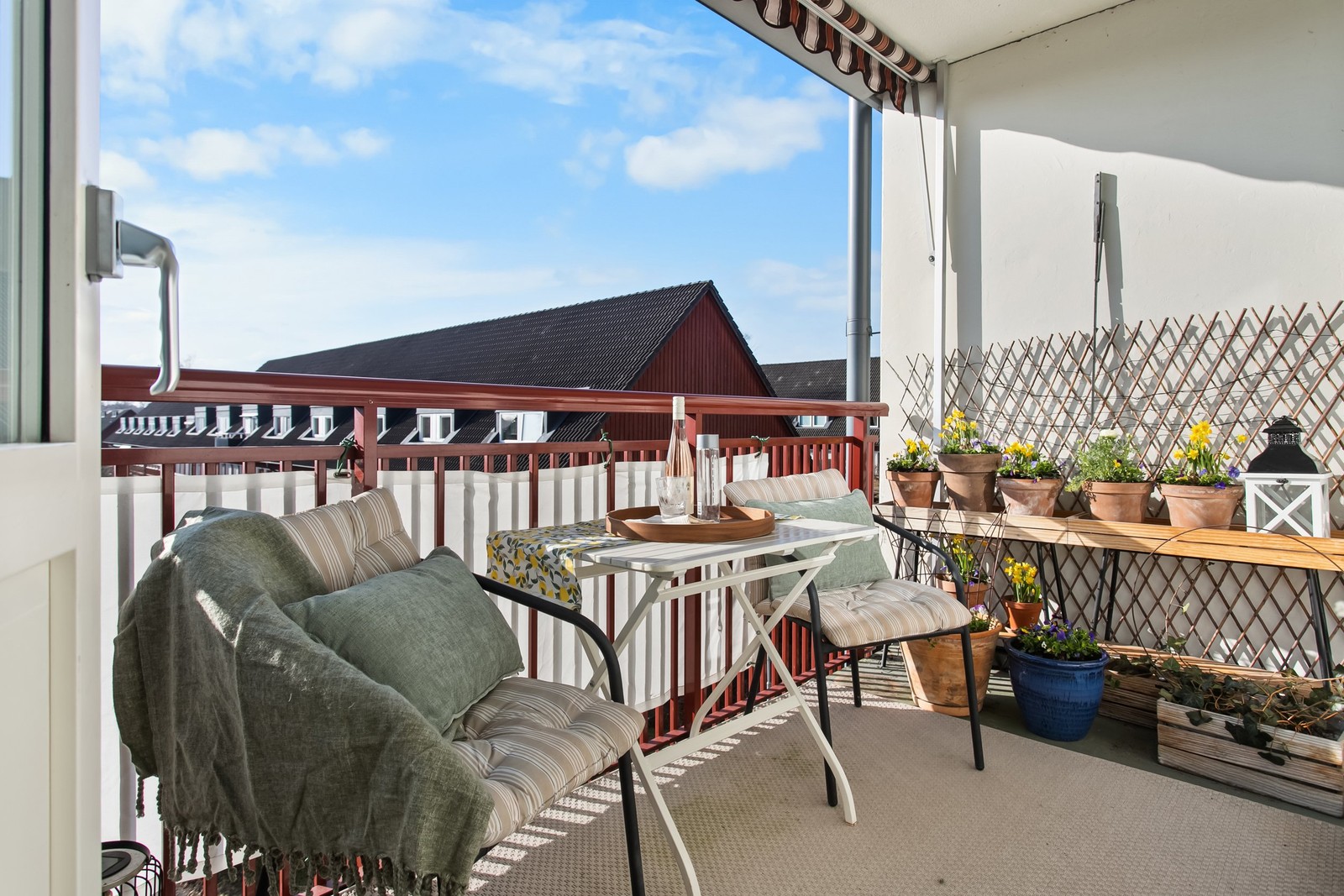 Smart 3,5:a med närhet till det mesta! Lägenheten har ett oslagbart ljusinsläpp och varje kvadratmeter är genomtänkt och optimerad för ett modernt och funktionellt boende. Här kombineras smart planlösning med generösa sociala ytor och praktiska lösningar som gör vardagen enkel. Läget högst upp i huset erbjuder ett ljust och luftigt vardagsrum med utrymme för matplats vilket skapar en naturlig samlingspunkt för både vardag och umgänge. Köket är effektivt utformat med goda arbetsytor, gott om förvaring och en smart bänk med utsikt mot grönområde för frukost eller den snabba lunchen. De vita skåpsluckorna i det renoverade köket matchar förvaringsmöjligheter som byggts till i den anslutande hallen. Från de sociala ytorna nås den trevliga balkongen i vindskyddat söderläge som blir en förlängning av vardagsrummet. Ett av de två sovrummen har delats av som skapar ytterligare ett rum som lämpar sig utmärkt som gästrum eller walk-in-closet. Rumsavdelningen kan enkelt återställas för den som önskar. Renoverat badrum. Genomgående trägolv i alla rum. Planlösningen gör bostaden flexibel och lätt att anpassa efter livets olika skeden. Bra förvaringsmöjligheter med flera garderober och externt förråd.