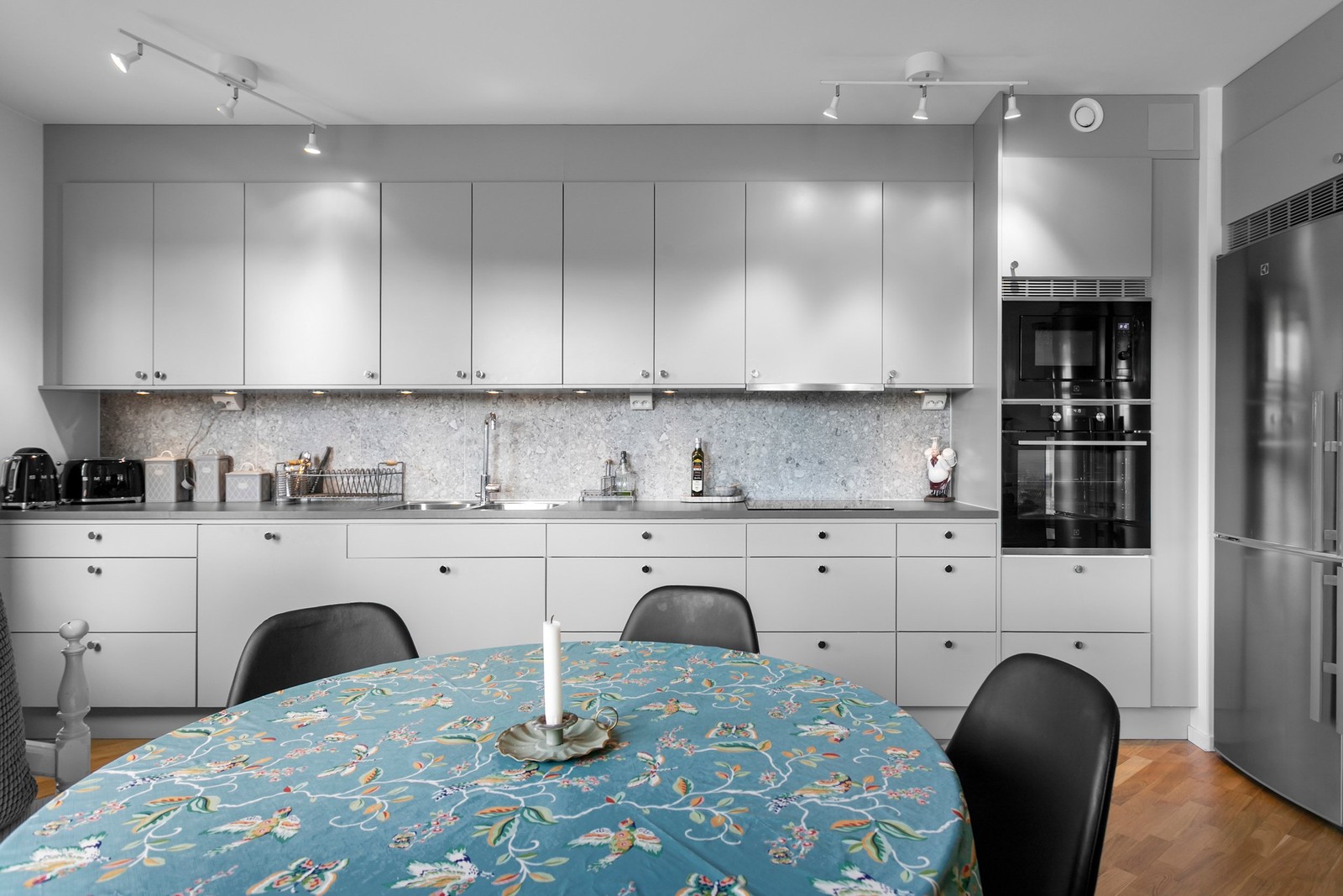 Högst upp i huset, med minimal insyn och genomgående ljusinsläpp, hittar du denna välplanerade och stilrena bostad på Krögers promenad 21. Här möts du av genomtänkta materialval, smarta lösningar och gott om yta för både vardag och umgänge.