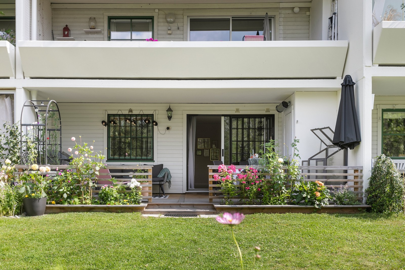 Här bor du i en mycket trivsam bostad med alla bekvämligheter du kan önska, kompletterad med en härlig uteplats som bjuder på grönska och avskildhet – perfekt för lata sommarkvällar, trevliga middagar med vänner eller lek för barnen.
