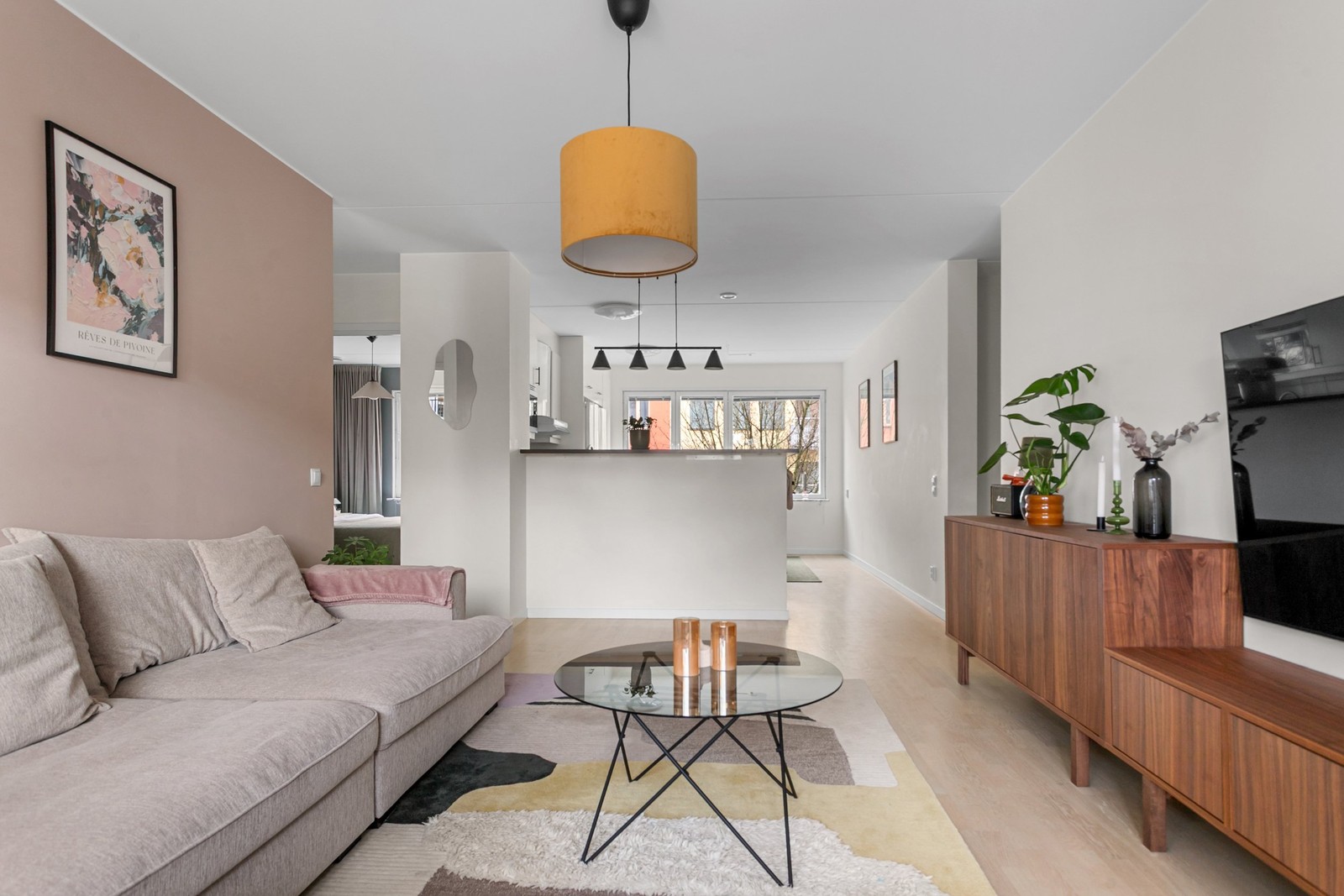 Här bor du i en generös fyra med stora ytor, tre bra sovrum och två badrum med dusch. I det större badrummet finns också både tvättmaskin och torktumlare samt arbetsbänk och förvaringsskåp. Lägenheten har ett härligt ljusflöde tack vare stora fönsterpartier i två väderstreck och en semiöppen planlösning mellan kök och vardagsrum. Köket är smart avgränsat med en bardisk för maximering av både yta och umgänge. Matplats med plats för sex-åtta personer. Från vardagsrummet nås en stor balkong med västläge och utsikt över den egna innergården. Genomgående vitlaserad ekparkett och målade väggar med smakfulla färgval. Mycket goda förvaringsmöjligheter med många garderober, klädkammare och separat källarförråd.