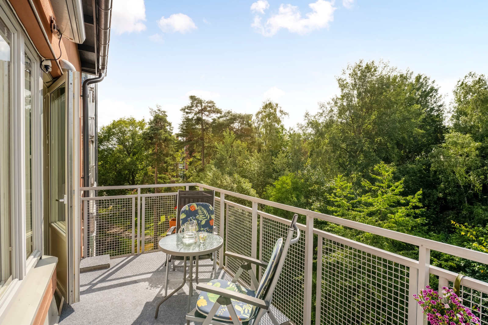 Lägenheten kan disponeras som en 3:a, högst upp i huset med grönskande utsikt och balkong i soligt läge.