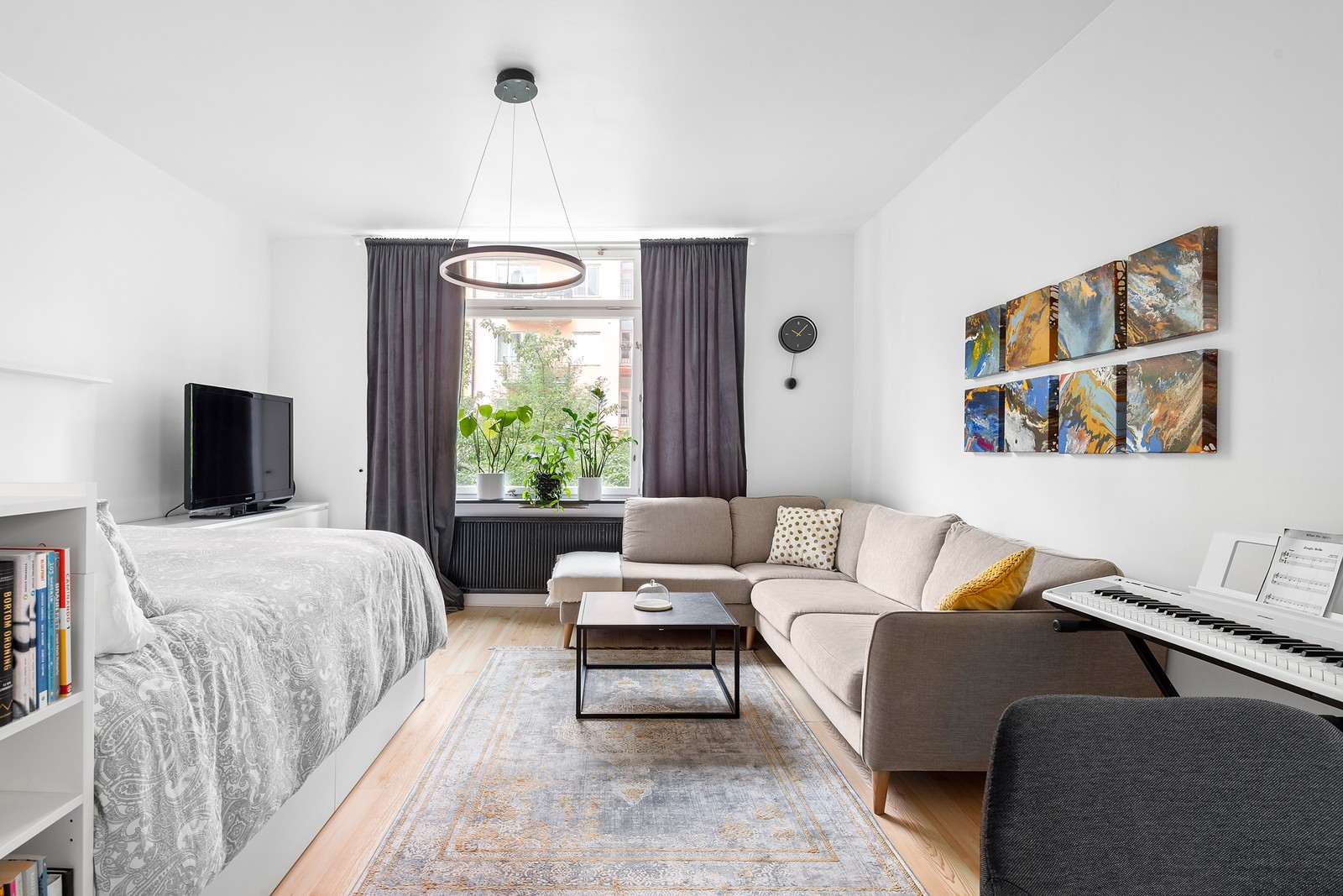 Nu ges det tillfälle att förvärva en mycket trevlig bostad på populära Erik Sandbergs Gata i Råsunda. I backen upp på Erik Sandbergs gata ligger denna trevliga lägenhet. Renoverat kök med goda förvaringsutrymmen. Välplanerad hall med garderober från golv till tak. Bostaden är generellt väldigt smart planerad och renoverad. Vitmålade väggar och ekparkett. Helkaklat badrum med badrumsskåp, dusch och duschglasvägg. Plats för större soffgrupp och större säng i allrummet. Här bjuder dem stora fönsterna på ett generöst ljusinsläpp och tillsammans med den väl tilltagna takhöjden på ca 2,70 så känns lägenheten mycket rymlig. Köket är funktionellt och stilrent.