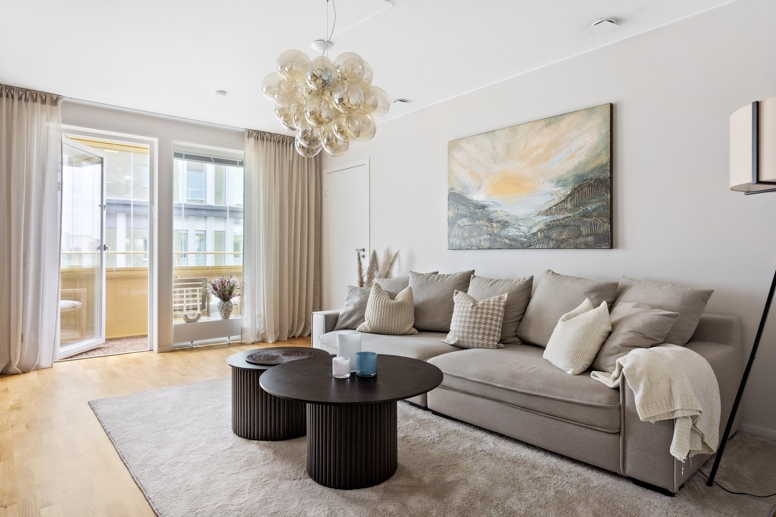 Vardagsrummet ligger i nära anslutning till köket, har stora fönster som ger ett härligt ljusinsläpp. Från vardagsrummet når du den rymliga balkongen, som är belägen högt upp i huset och erbjuder sol under stora delar av dagen.