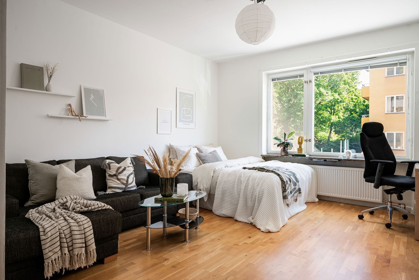 Välkommen till denna bostad om 41 kvm på attraktiva Östervägen 14A – perfekt för dig som söker ett bekvämt boende med smart planlösning och närhet till allt. Här bor du i en charmig och stabil förening med låg avgift och grönskande innergård, mitt i hjärtat av populära Råsunda. Lägenheten erbjuder en rymlig planlösning med gott om ljusinsläpp från stora fönsterpartier. Det generösa allrummet har plats för både soffgrupp och säng, och med en enkel vägglösning kan bostaden omvandlas till en praktisk 2:a – perfekt för den som vill ha ett separat sovrum eller kontor.