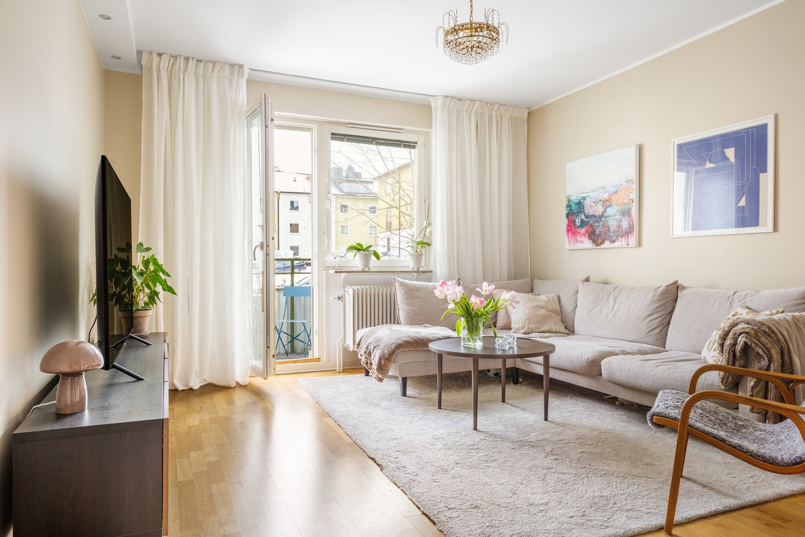 Varmt välkommen till denna ljusa och välplanerade 2:a. Här finner du en ljus gavellägenhet som bjuder på en harmonisk kombination av modern komfort och klassisk charm. De stora fönstren släpper in rikligt med dagsljus och skapar en luftig känsla genom hela bostaden. Köket är stilrent och praktiskt (diskmaskin finns) med plats för matbord och sociala middagar. Vardagsrummet erbjuder lättmöblerade ytor för umgänge och avkoppling och i sovrummet finns en rofylld plats för vila. Det helkaklade badrummet är utrustat med golvvärme och tvättmaskin vilket gör vardagen både smidig och bekväm. Trivsam balkong som erbjuder sol i sydostläge. En bostad som passar perfekt för dig som vill ha ett smart planerat hem med trivsam atmosfär och hög boendekvalitet.