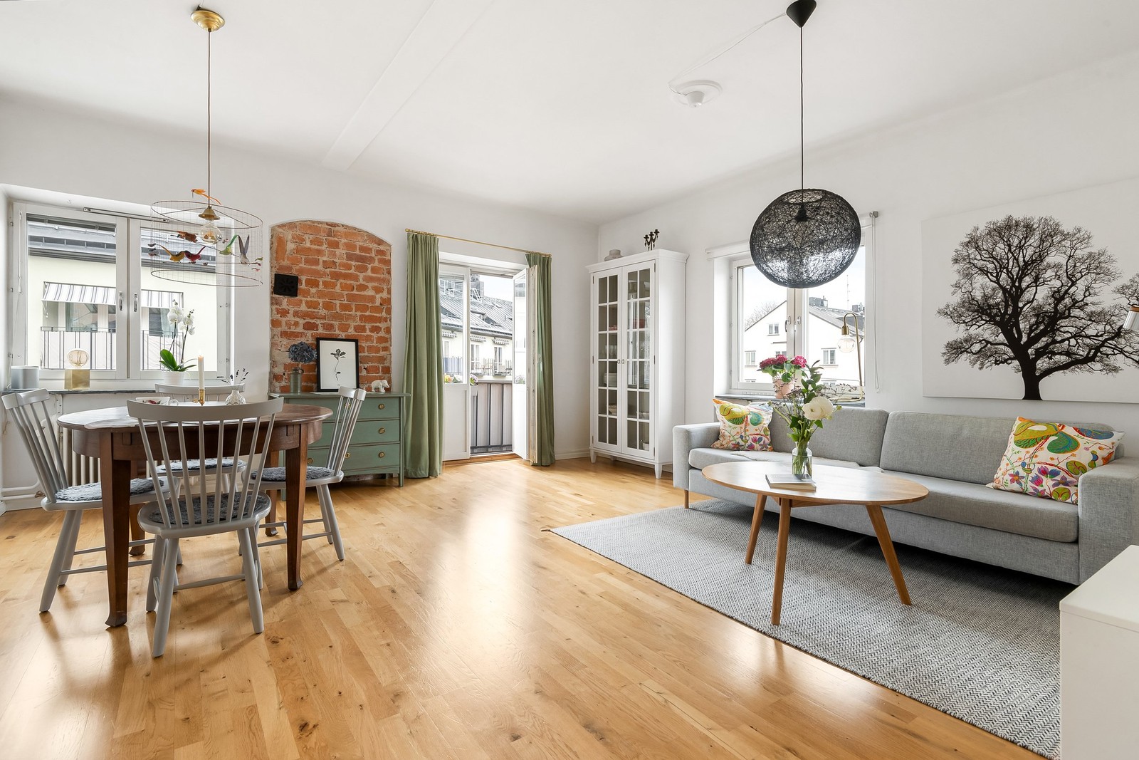 Nu finns möjlighet att förvärva denna charmiga 2:a belägen på eftertraktad adress i centralt läge. Bostaden ligger högst upp i fastigheten i gavelläge med fönster åt flera väderstreck som förstärker den rymliga känslan och där himlen känns som er närmsta granne. Till boende erbjuds även en väl tilltagen balkong med flera sköna soltimmar.