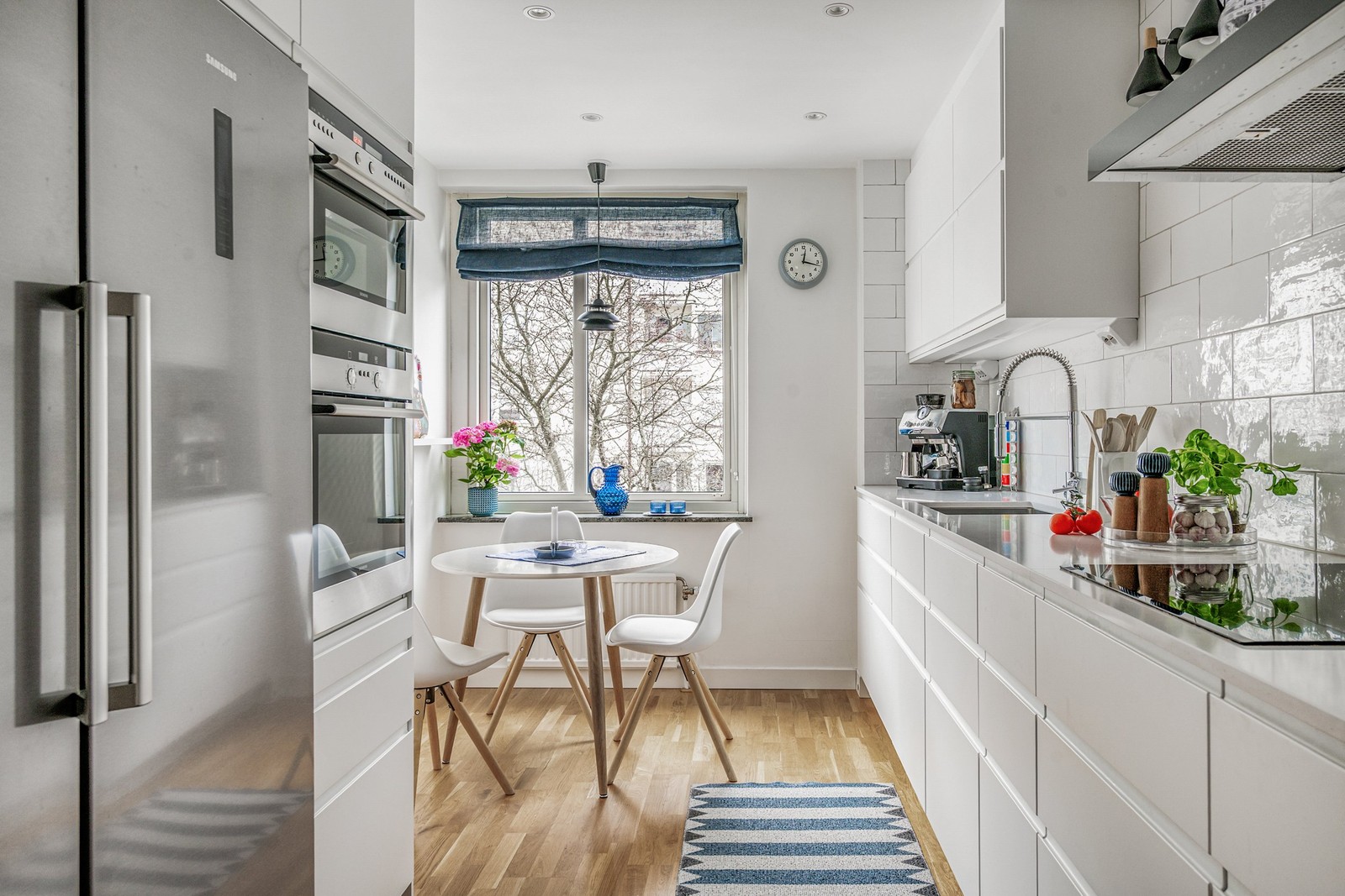 Lägenheten är välplanerad med generösa rum, stora sällskapsytor och gott om förvaring. Det renoverade köket är fullt utrustad och med bra arbetsytor med plats för matbord. Vidare in ligger vardagsrummet med stora ytor för matbord och soffgrupp, här når ni den soldränkta balkongen i lummig vy. Badrummen är nyligen stambytta och renoverade med unika tillval och här finns tvättmaskin och torktumlare samt två duschar. Bostaden släpper in behagligt ljusinsläpp tack vare fönster i genomgående väderstreck. Sovrummen är rymliga med plats för förvaring och större säng.
