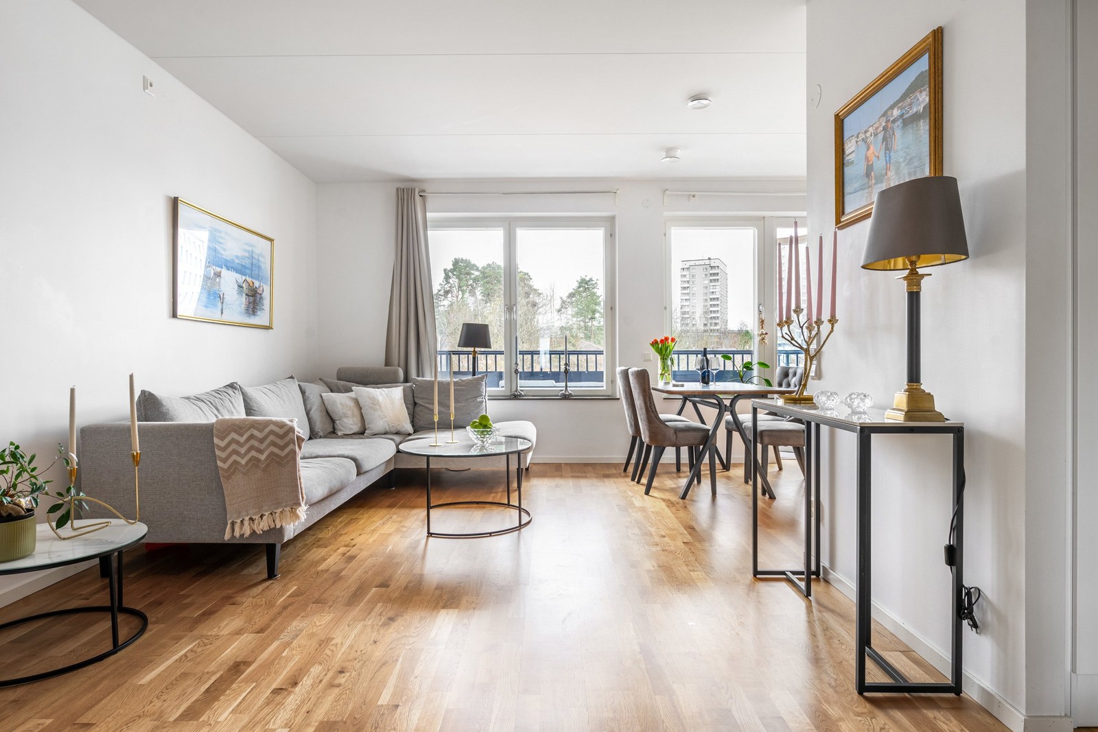 En optimalt planerad tvåa med ett härligt ljusinsläpp genom stora fönsterpartier. Öppen planlösning mellan kök och vardagsrum skapar en fantastisk rymd och social plats för hela familjen. Härifrån nås balkongen i ett soligt läge med en magisk utsikt över Ulriksdals golfbana med eftermiddags- och kvällssol! Vidare finns en hall som bjuder på en välkomnande känsla med bra förvaring, ett toppfräscht badrum med golvvärme samt tvättmaskin med kombinerad torktumlare. Sovrummet är stort med plats för skrivbord.